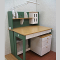上棚にはかわいい開き扉が付いた収納スペースを確保。ワゴンの引出は鍵とペントレー付で全段レール付、本体引出しはいっぱい引き出せる3段式スライドレールを使用。2024年型は12wの調光式T型LEDライトが付きます。