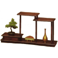 お部屋のちょっとした空間に“和”のテイストを。ほっとなごむ空間を演出する飾り棚。盆栽に限らず、お気に入りのオブジェがお部屋に趣きのある雰囲気を演出します。落ち着いたマホガニー色と違い棚が、和室のみならずフローリングのお部屋にも映えます。