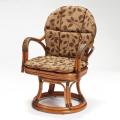 回転機能付。座はピール(皮籐)の網代編み、背は木目編みです。肩までやさしく包み込んでくれるような座り心地で、クッションをはずしてもご使用できます。座面高さ:42cmで立ち座りが楽です。
